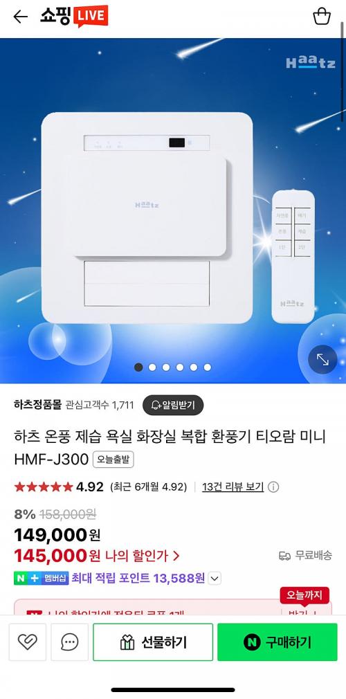 하츠 미니 티오람(HMF-J300) 최종 결제가 135,000원
