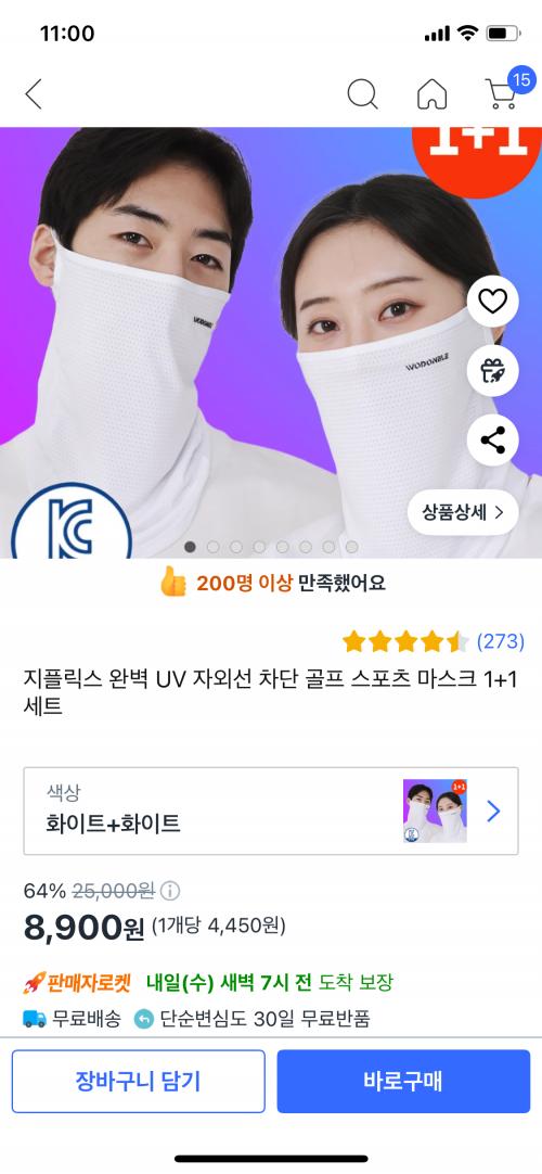 [쿠팡] 지플릭스 완벽 UV 자외선 차단 골프 스포츠 마스크 1+1 (8900원/무배) > 국내핫딜