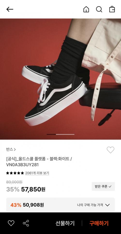 [29CM] 반스 올드스쿨 플랫폼 블랙:화이트 (50,908원/무료)