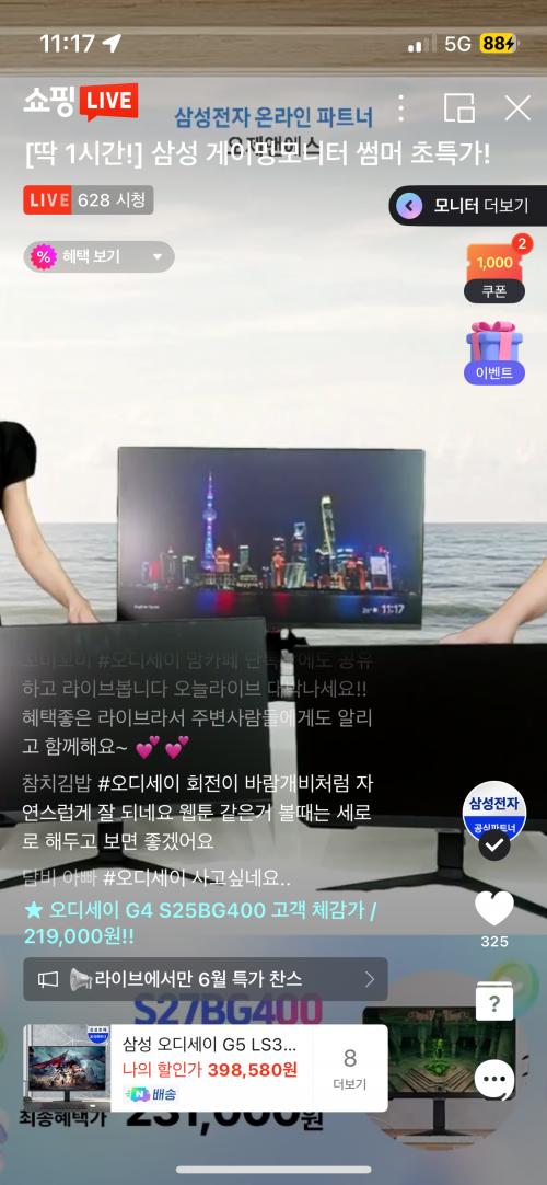 [네이버] 삼성 오디세이 G4 BG400 라이브 특가 (219,000/무료)