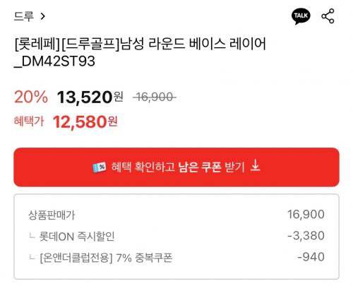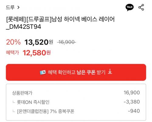 [롯데온] 드루 남성 베이스 레이어 (12,580원/무료)