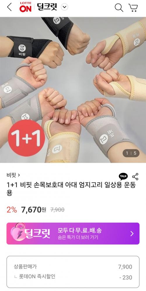[롯데온] 1+1 비핏 손목보호대 아대 엄지고리 (7,670원/무료)