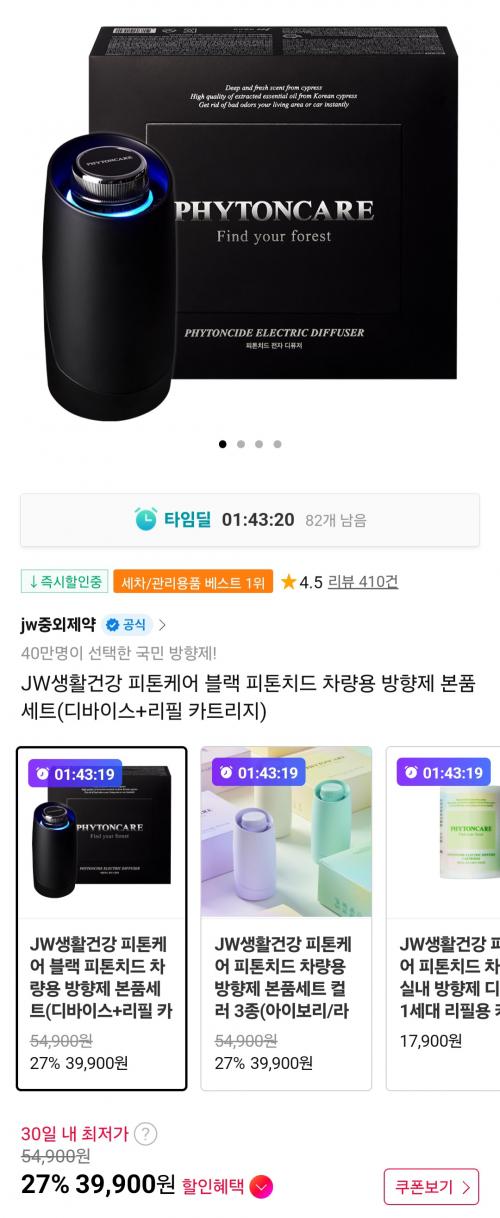 피톤케어 차량방향제 + 리필 카트리지 구성이고 셀 일 없는 고체형입니다