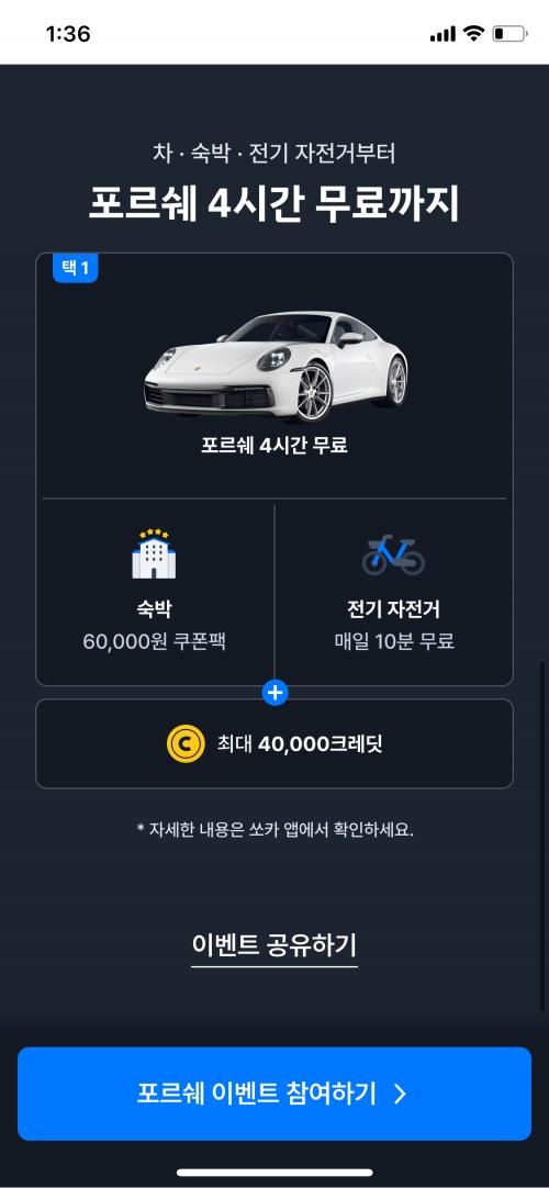 쏘카에서 포르쉐 4시간 무료 이벤트 진행하고 있으니 참여해보세요