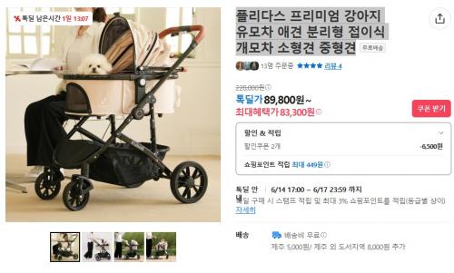 [카카오 톡딜] 플리다스 프리미엄 강아지 유모차 애견 분리형 접이식 개모차 (88,300원/무료배송) > 국내핫딜
