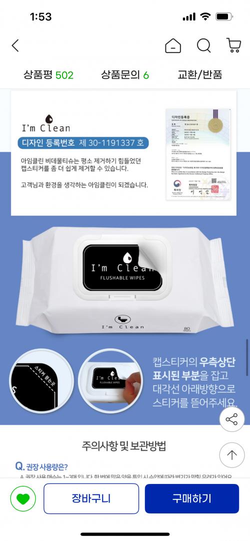[지마켓] 아임클린 화장실용 비데 물티슈 80매 x 10개 (17,890원/배송비) > 국내핫딜