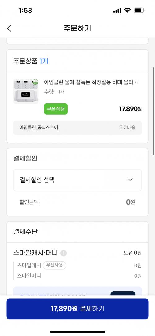 [지마켓] 아임클린 화장실용 비데 물티슈 80매 x 10개 (17,890원/배송비)