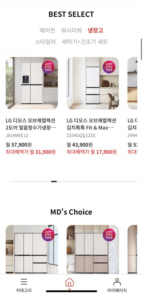 냉장고 냉기가 약해서 새로 살까하다 가격대가 고민이였는데 LG가전에서 구독하면 월 6~8만원대로 사용할 수 있다고해서 보고 있습니다.