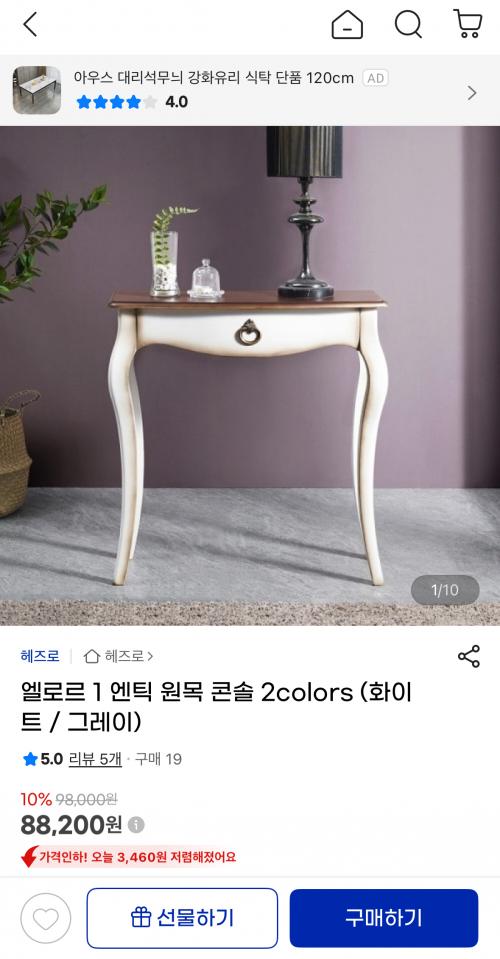 [G마켓] 헤즈로 엘로르1 원목 콘솔 2컬러 (88,200원/10,000원)