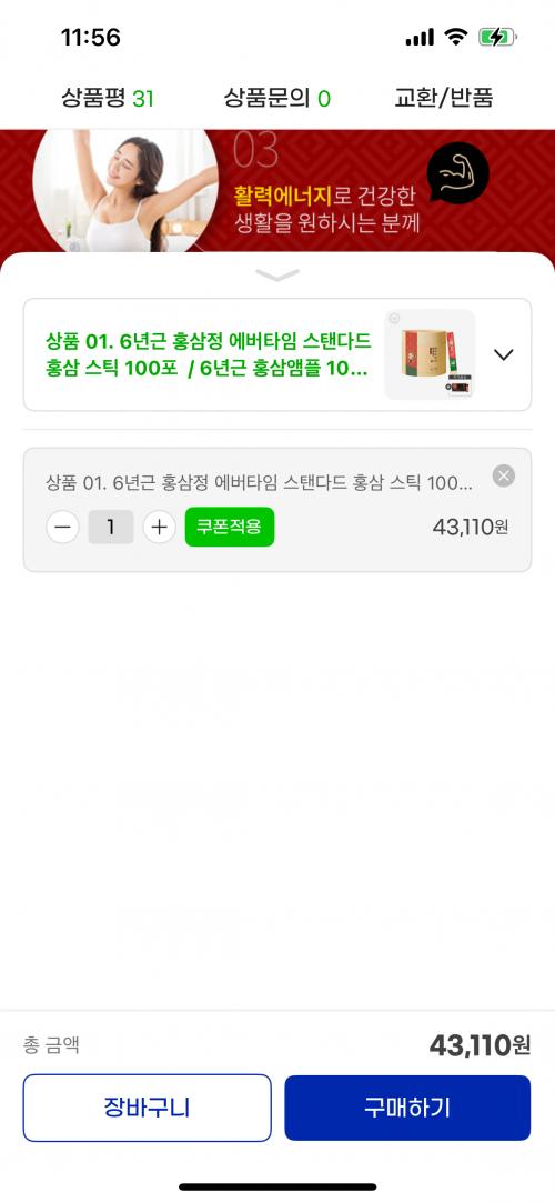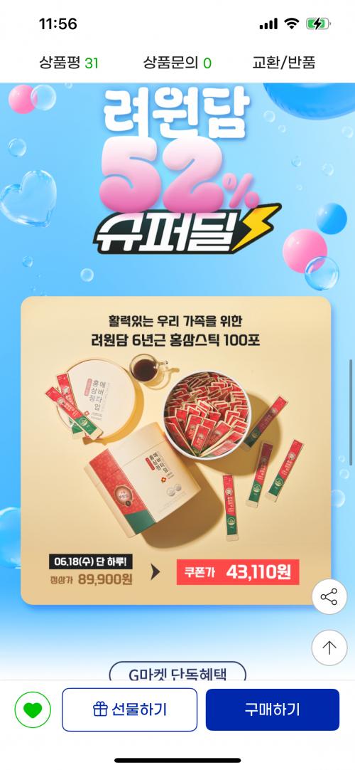홍삼정 에버타임 홍삼 스틱 100포+ 홍삼앰플 10입 증정 상품 43110원 무료배송입니다!
