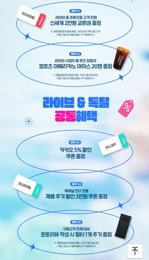 이벤트도 다양하게 구성되어 있어, 라이브 중 구매 인증 시 신세계 상품권 2만원 교환권이 전원 지급되고,