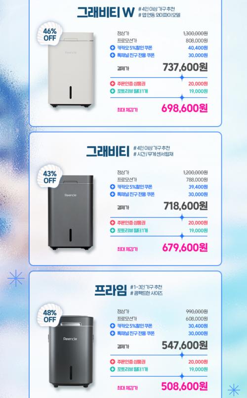 그래비티W, 그래비티, 프라임 모델이 모두 할인된 가격에 제공됩니다.