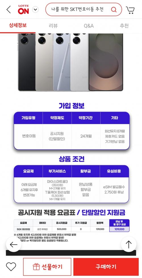 SKT 번호이동 특가떠서 279,000원에 무료배송이고