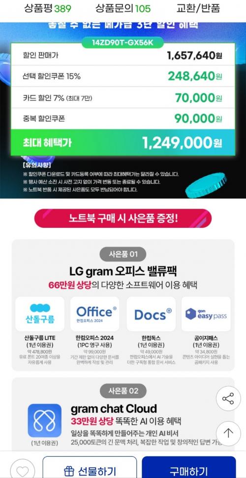 카드 할인 7%까지 먹이면 174만원 대 나옵니다
