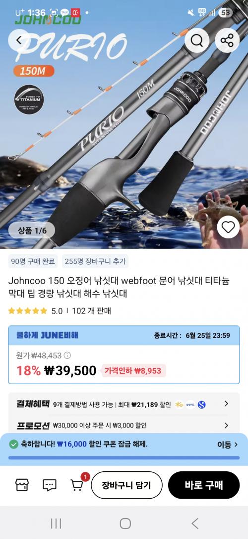할인코드 : RANGS091 또는 AEKJUNE2701 입력하시면