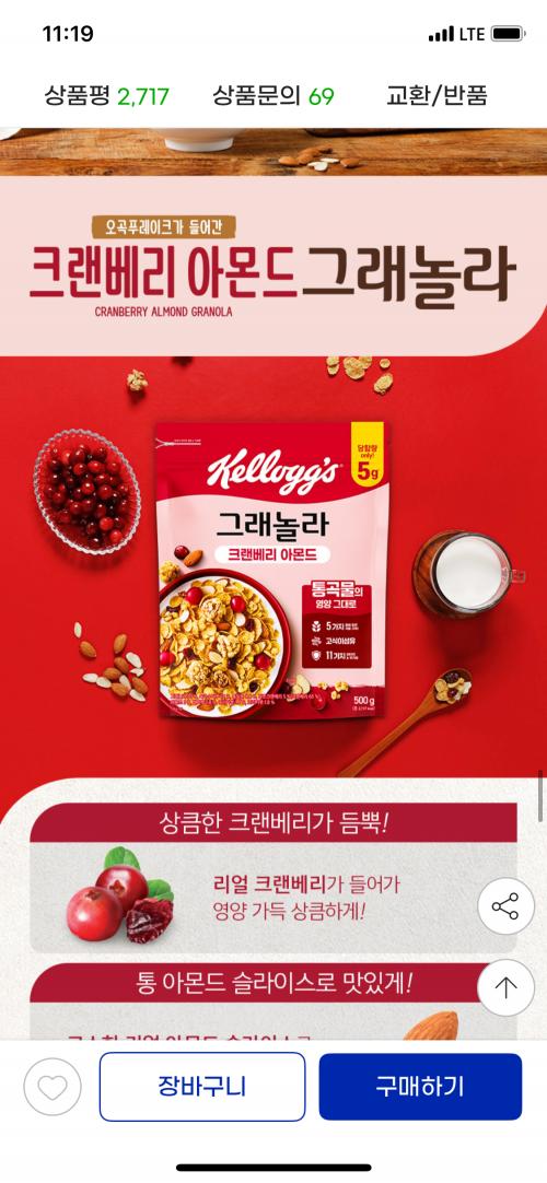 넛츠앤씨드, 큐브 현미, 크랜베리 아몬드 그래놀라, 통퀴리 그래놀라 중