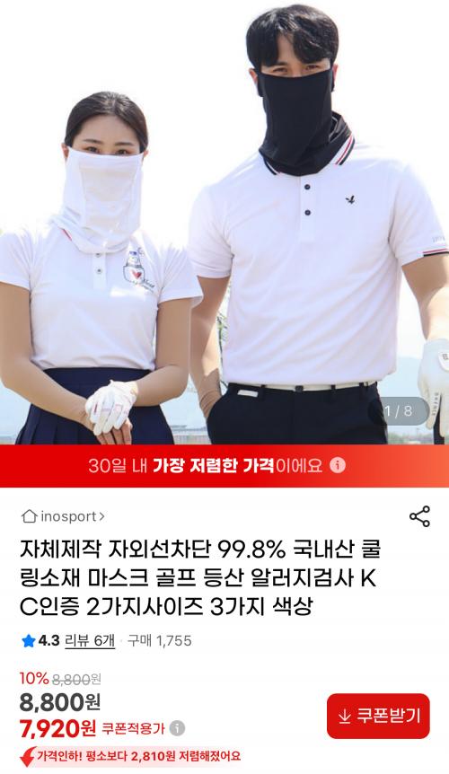 [지마켓] 국내생산 에이크 UV차단 쿨마스크 (7,920원/무배)