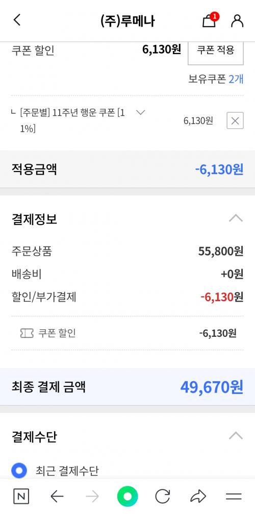 카톡 친구추가 하면 11% 쿠폰 증정해서 먹인다치면 5만원도 안되는 꼴이라