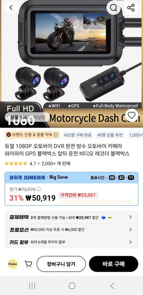 오토바이 방수 블랙 박스 이구요 프로모션 쿠폰 받고 코인할인 까지 받으면