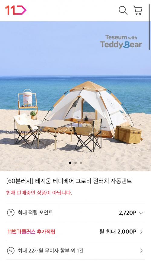 [11번가] 테지움 테디베어 원터치 자동텐트 3~4인용 (60분러시가 85,000원/무료) > 국내핫딜