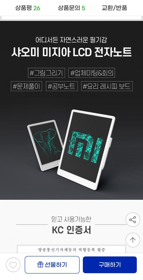 [지마켓] 샤오미 LCD 전자노트 드로잉 전자패드 (19,930원/무료) > 국내핫딜