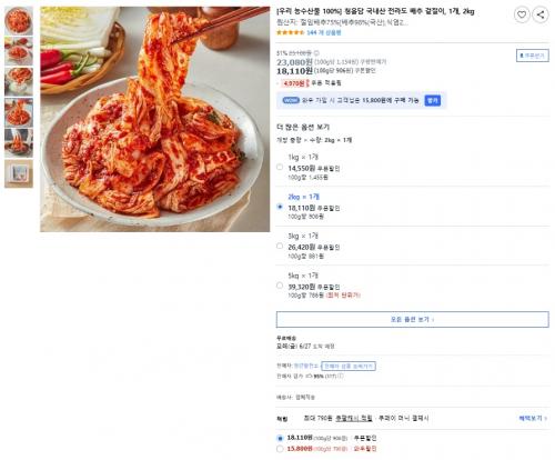 [쿠팡] 청올담 국내산 배추 겉절이 2kg (15,800원 / 무배) > 국내핫딜