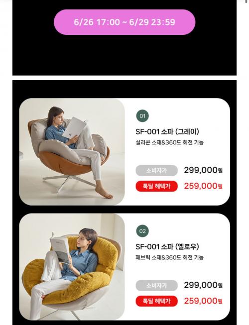 기능성 1인용 소파로 최종가 257,000원 나옵니다