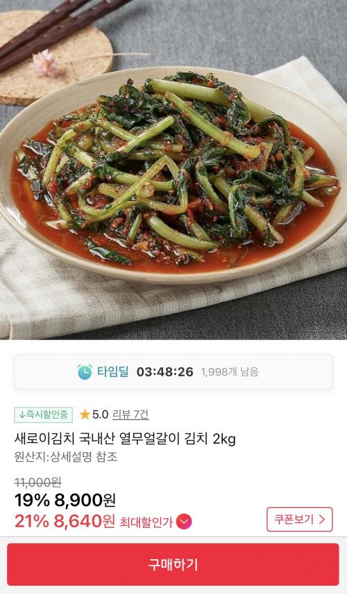 [11번가] 국내산 열무얼갈이 김치 2kg (8,640원/무배) > 국내핫딜