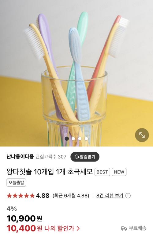 [네이버] 왕타칫솔 10개 (10,400원/무료) > 국내핫딜