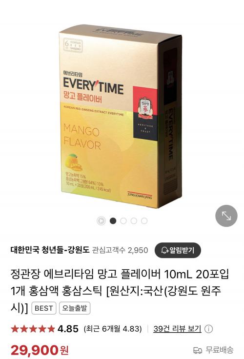 정관장 에브리타임 망고 플레이버 할인 행사 중입니다.