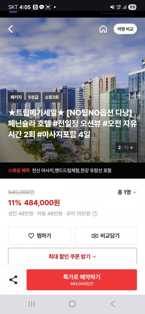 트립스토어 프로모션 하는데 다낭 3박5일 노팁 노옵션 패키지 484,000원부터 있네요~