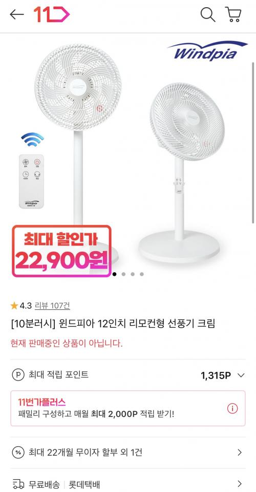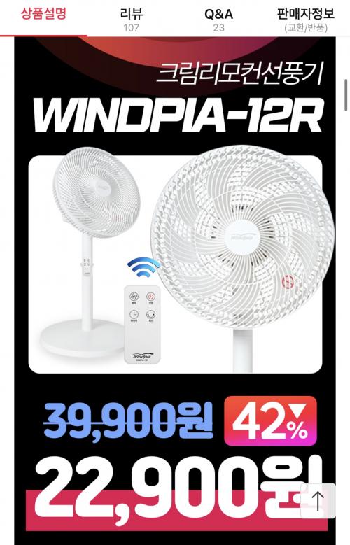 [11번가] 윈드피아 선풍기 12인치 WINDPIA-12R (10분러시)(22,900원/무료) > 국내핫딜