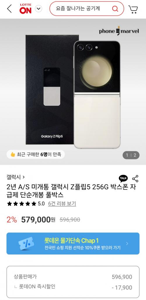 [롯데온] 갤럭시 Z플립5 256G 자급제 풀박스 (579,000원/무료)