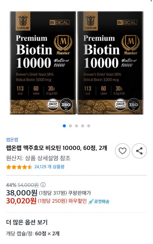 [쿠팡] 랩온랩 맥주효모 비오틴 10000, 60정, 2개 (30,020원/무배) > 국내핫딜