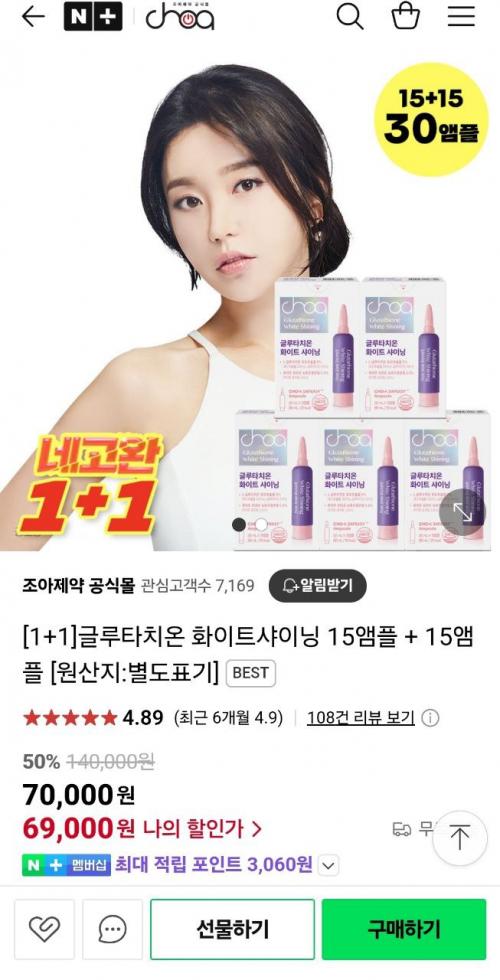 [네이버] 조아제약 글루타치온 화이트샤이닝 15+15 총 30앰플 (69,000원/무배) > 국내핫딜