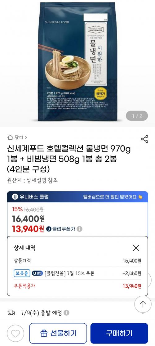 신세계푸드에서 고급화 전략으로 출시한 냉면이라네요 일반 냉면에 비해선 가격이 비싸긴함