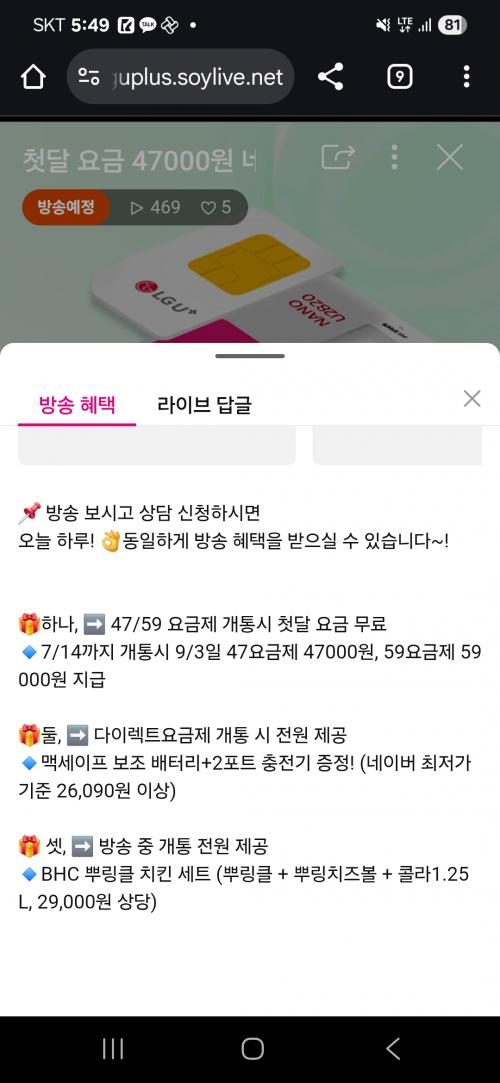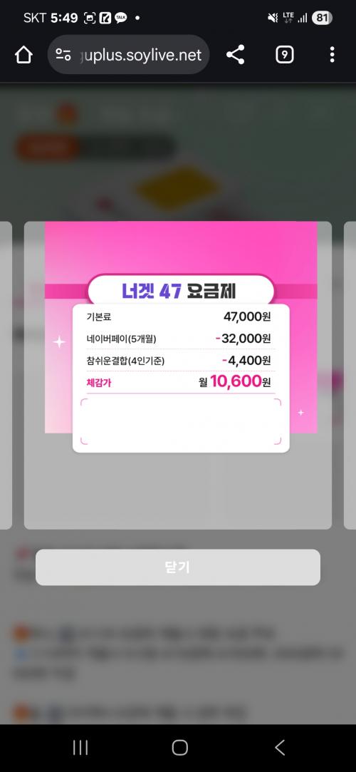 유플러스 너겟 요금제 라이브 혜택 괜찮은데 한번 보세요..