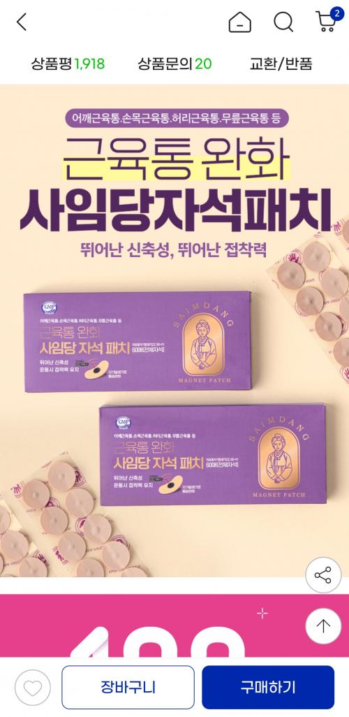 [지마켓] 근육통 완화 자석 패치 파스 총 120장 (9,530원/무료)