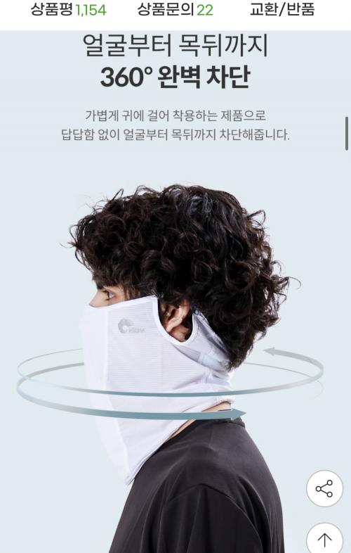 얼굴부터 목뒤까지 차단되는거라 낮에 운동나갈때 쓰기 좋습니다