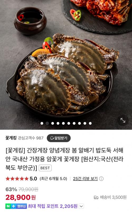 [네이버] 국산 전라도 양념 간장 게장 가정용 (28,900원/유배) > 국내핫딜