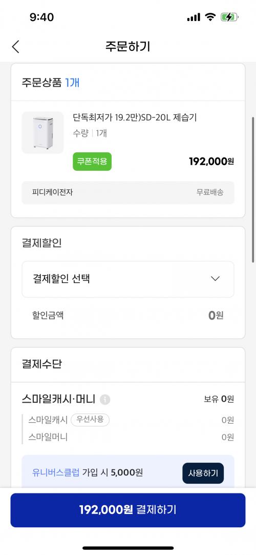 스마트에버 제습기 20L짜리 19만 2천원입니다.