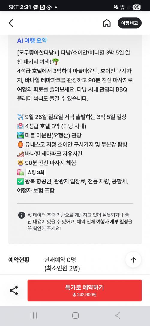 다낭/호이안 3박5일 패키지는 242,900원부터 있어요..