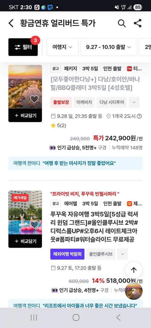 선택관광이나 쇼핑 싫으면 에어텔도 있으니 한번 보세요~