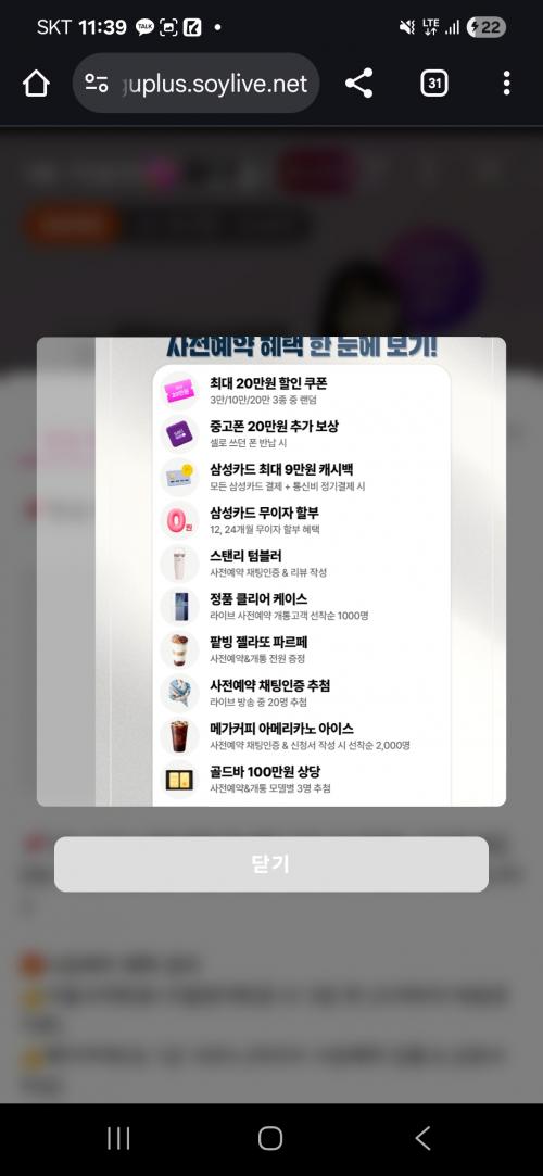 추가로 라이브에서 신청하면 커피랑 텀블러 등등 그리고 경품추첨 있어요~
