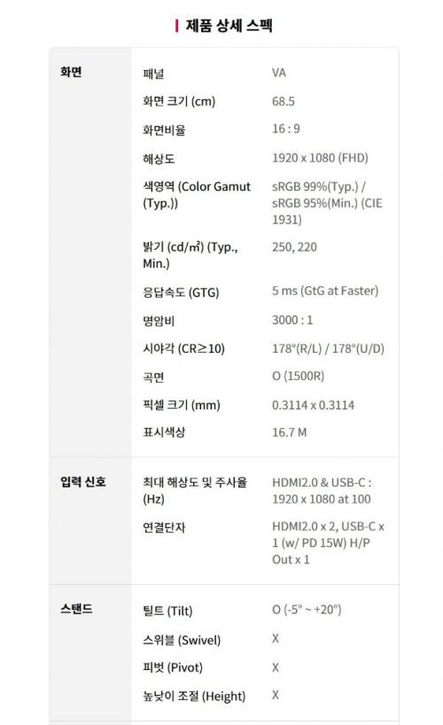 곡률은 1500R이고 VA패널이에요