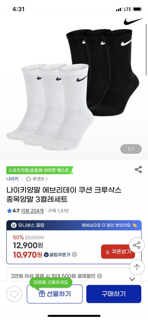 [지마켓] 나이키양말 중목양말 3켤레세트 (12900원/무배) > 국내핫딜