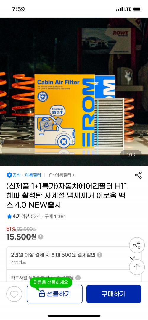 H11 헤파 활성탄이고 1+1인데 가격 좋으니까 한번 보세요