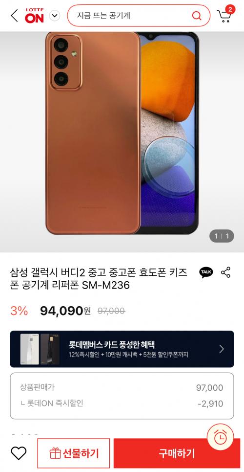 [롯데온] 삼성 갤럭시 버디2 A급 중고폰 SM-M236 (94,090원/무료)