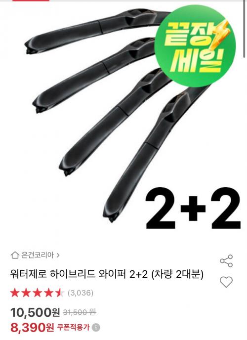 [옥션] 워터제로 하이브리드 와이퍼 2+2 (8,390원/무료) > 국내핫딜