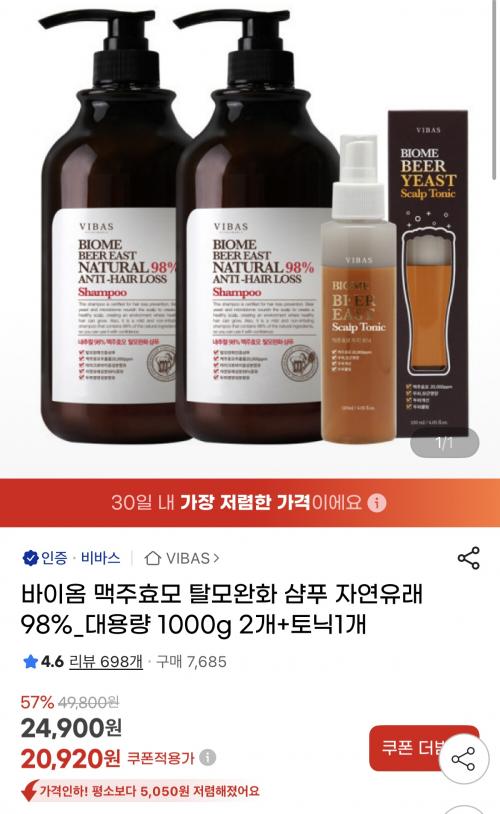 맥주효모 추출물 들어간 탈모샴푸인데